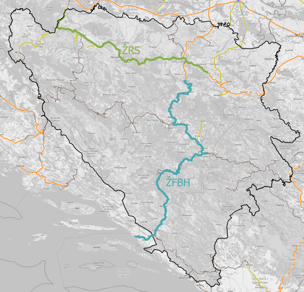 Das Netz der ŽFBH erstreckt von von Maglaj im Norden über Sarajevo – Mostar bis nach Čapljina im Süden. In den Sommermonaten wird ein Zug an Wochenendstagen nach Ploče in Kroatien verlängert.